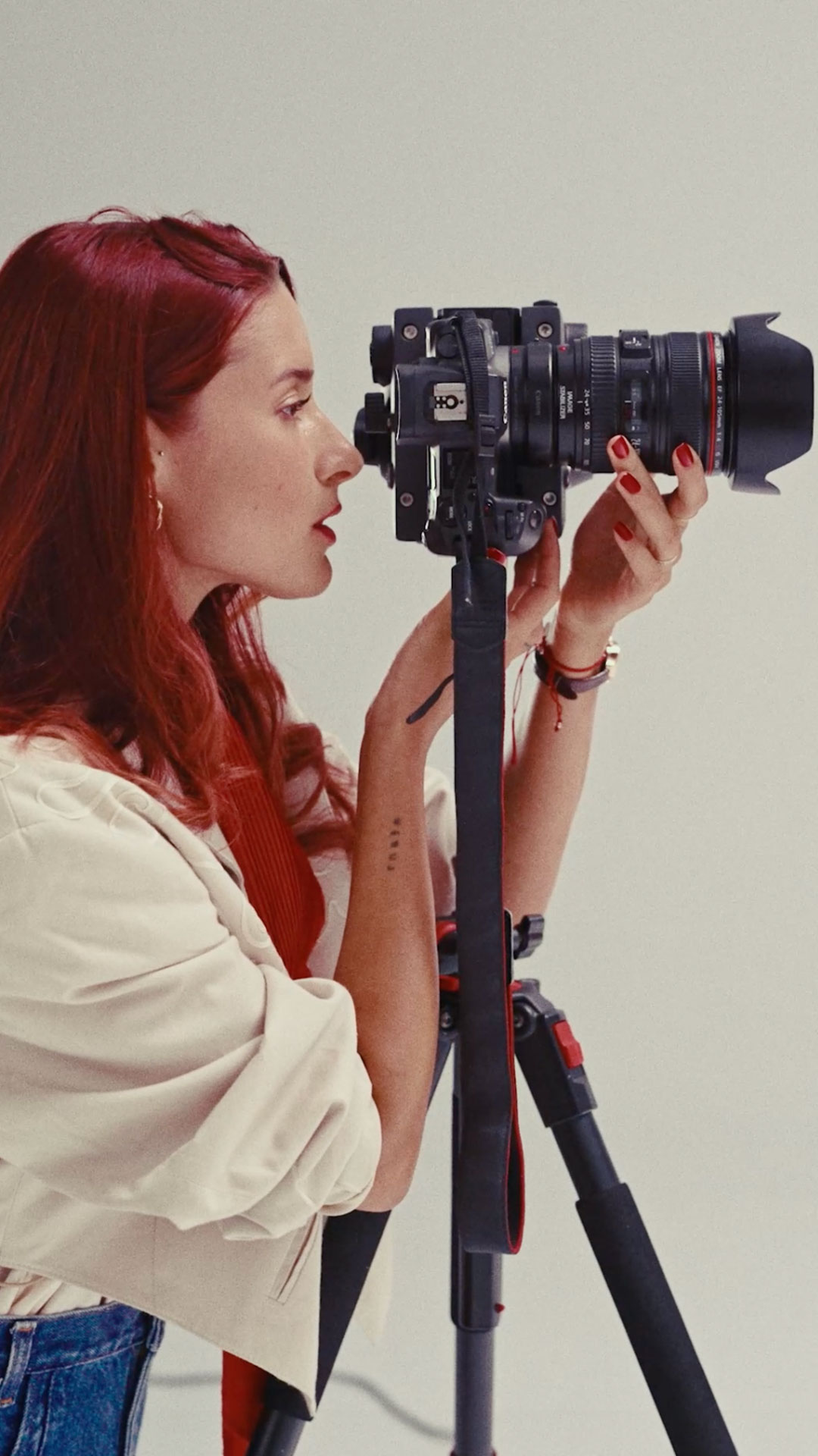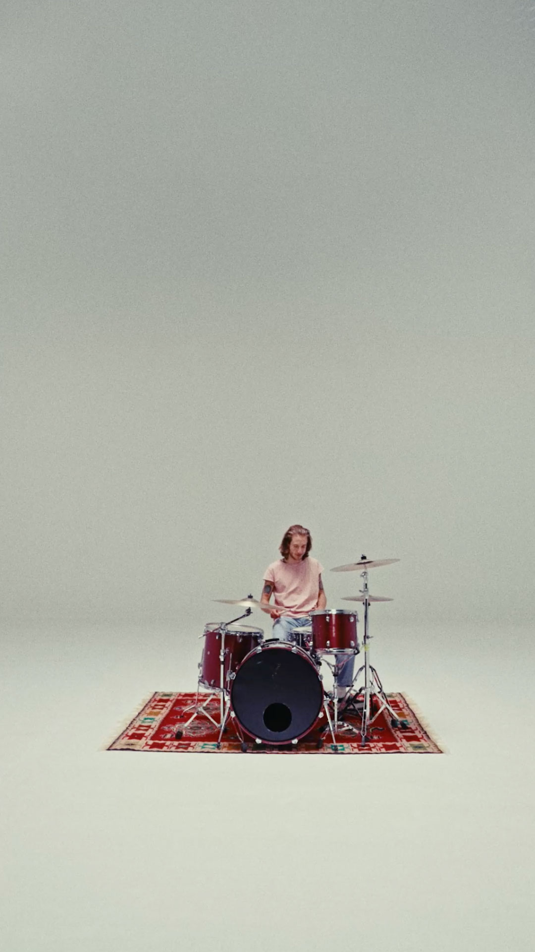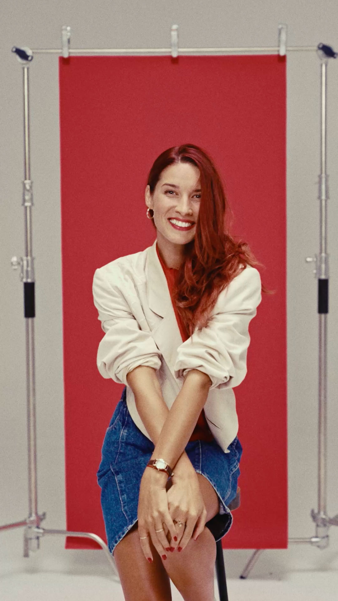 We brainstormed around the idea and suggested a few creative reworks - minimal adjustments to Žiška's script, but major ones regarding the shooting style, set design, and cast direction. We knew our cast choice needs to communicate authenticity and warmth and that's why we chose characters with confidence and charisma. Shot in a studio environment, all three scenes focus on a single character centered in clean negative space with minimalistic set design. Every element, from the deep crimson drums to the soft lighting tones, is set to depict iPhone's clarity and precision. Color plays a crucial narrative role: the red backdrop and matching accents in our character's wardrobe reinforce A1's brand coherence, thanks to our dear stylist Nevena Vuković.